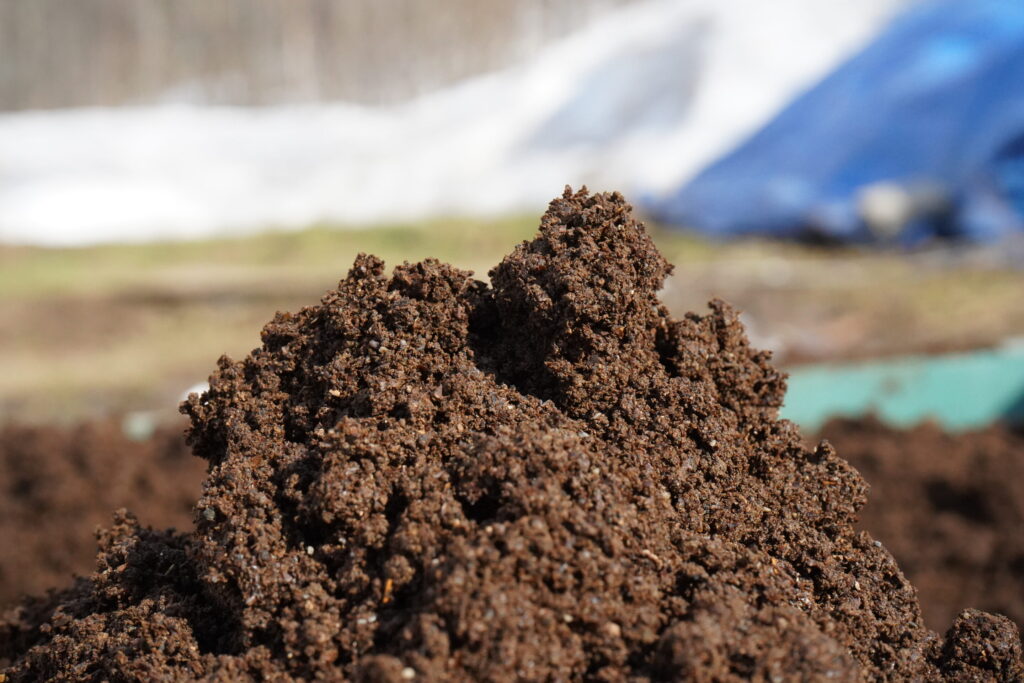 「八百結びの産土®」は、独自天然バイオスティミュラント「三方結水®(さんぽうけっすい)」により各地の土着菌(家畜糞尿等)を発酵活性させた天然有機資材です。プロトタイプの産土では“1gあたり30億個”を超える微生物が検出*され、圃場の土壌微生物量活性に大きく寄与する資材であることが各地での実証実験結果より確認できています。さらにその製造行程(特許取得)では、強烈な家畜糞尿の臭気が微生物活性により分解され、完熟した堆肥は臭気を放ちません(「三方結水®」は、畜産の臭気対策にも期待される資材です)。